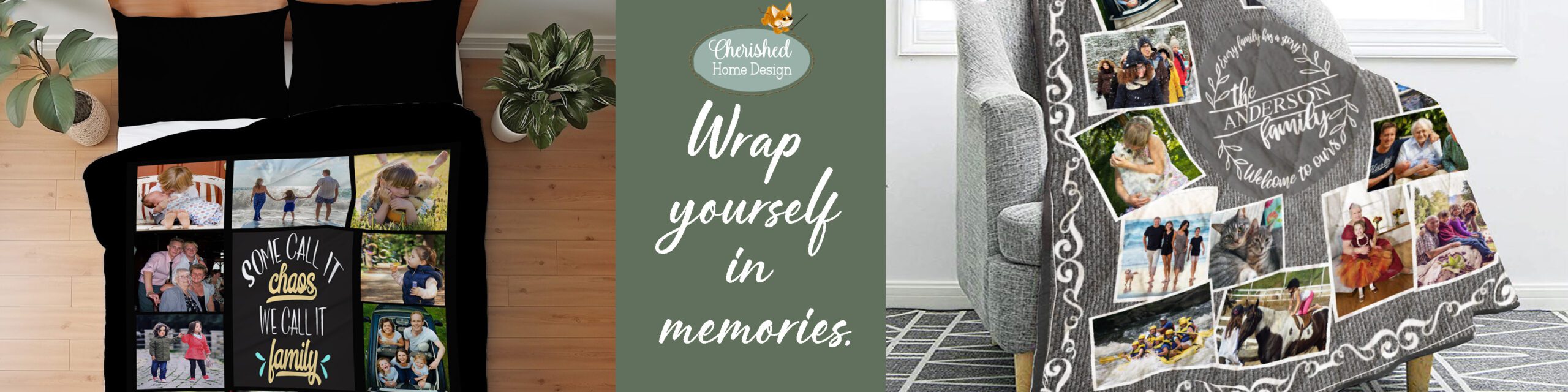 We have original designs of Photo Quilts, Photo Blankets, Photo Bedding Sets and Jewelry Photo Keepsakes that will be cherished forever. Let’s create your personalized memory quilt or blanket and make unforgettable memories for your loved ones today!